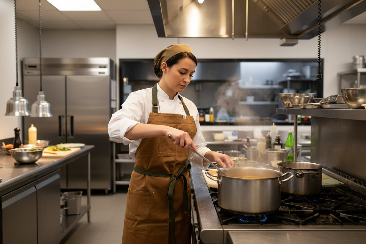 Crafted in tan cotton twill with adjustable green olive straps. Features 3 top pockets and 2 bottom side pockets. Sizing 5’3”-5’9”