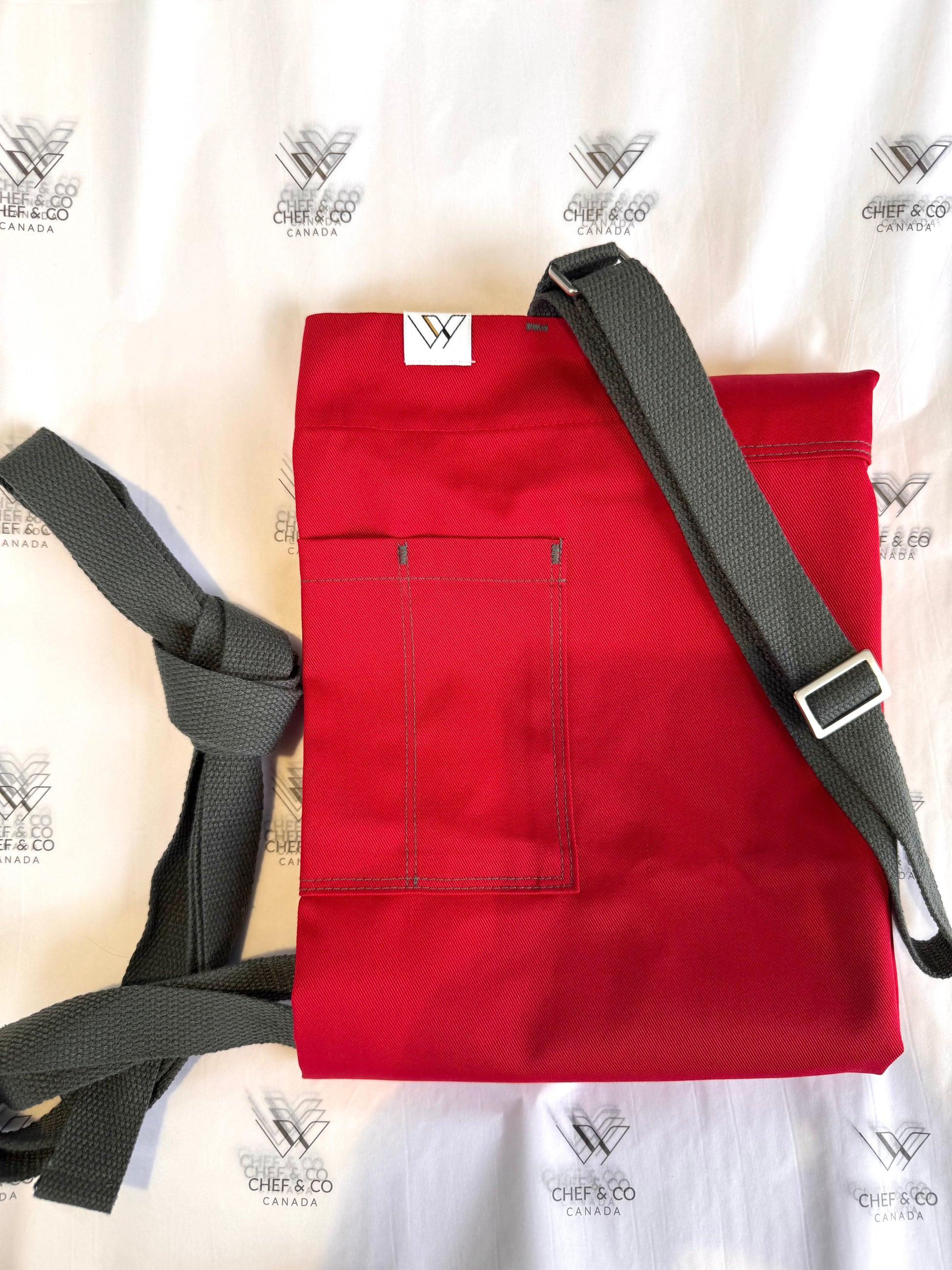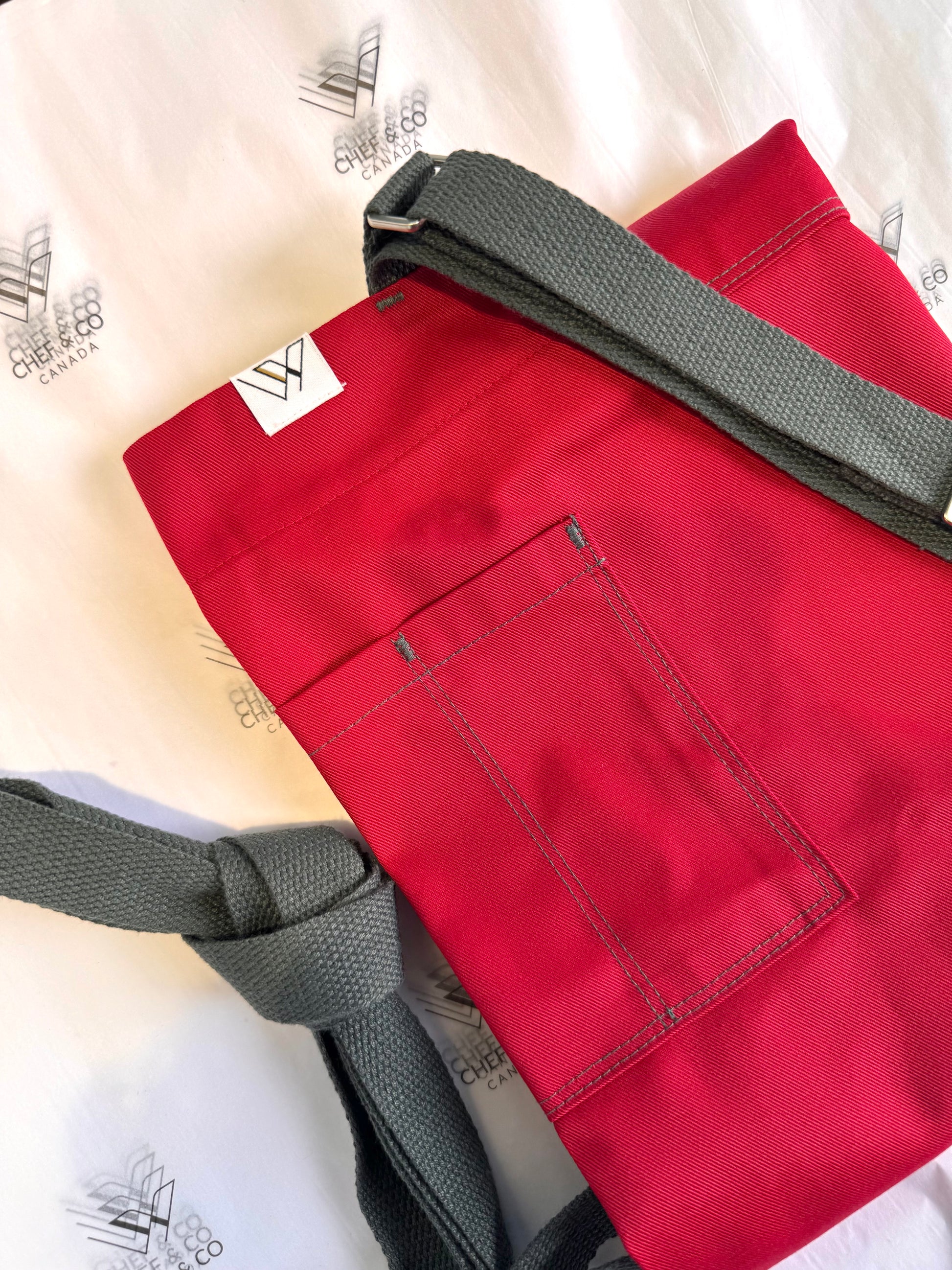 This series features 3 top pockets and 2 side pockets crafted in red cotton polyester. The colour stitching detail of the pockets matches the strap colour gray.