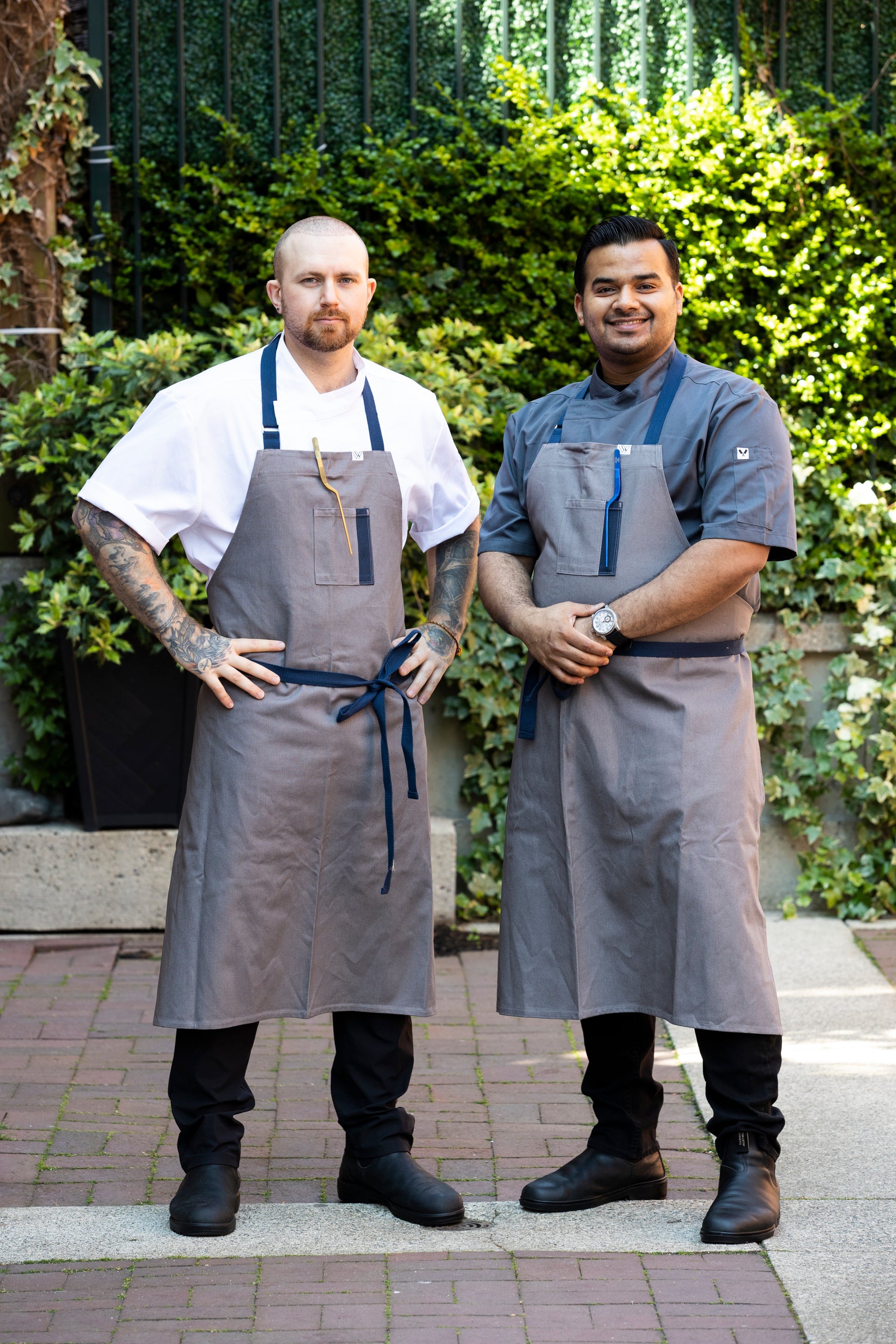 This collection is a play on an accent pen pocket with a matching adjustable neck strap. Crafted in cotton twill 1 wide and 1 slim top pocket. Size 3 5’8-6’1”