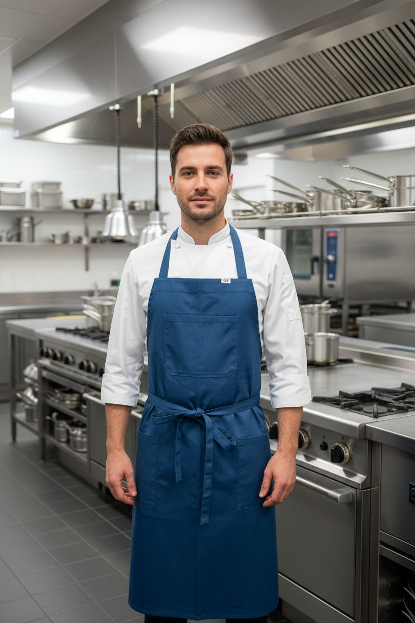 Crafted in cotton polyester. Features 4 slot top pockets and 2 side pockets. Sizing 5’3”-5’9”