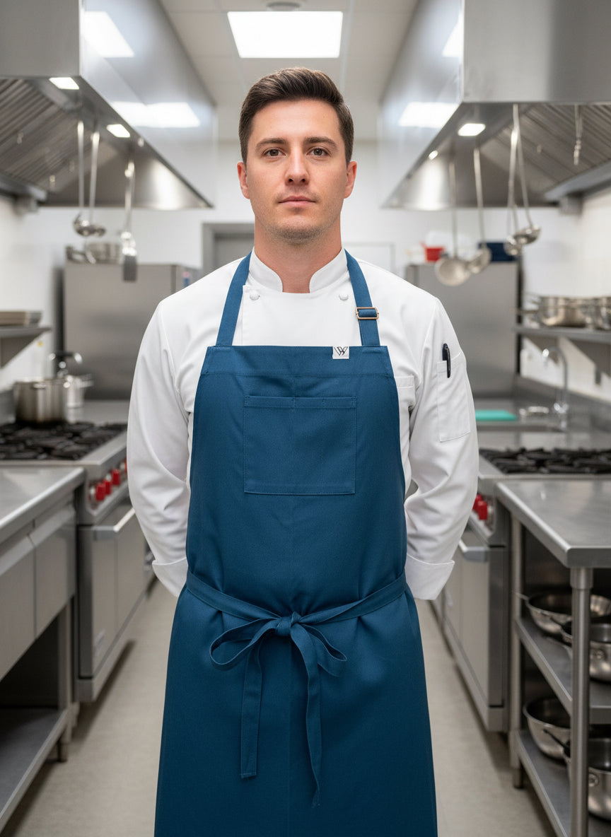 Crafted in blue cotton twill with 3 equal size pockets. The model generated same colour but pocket sizing is equal flushed left. Sizing for 5’8”-6’1”