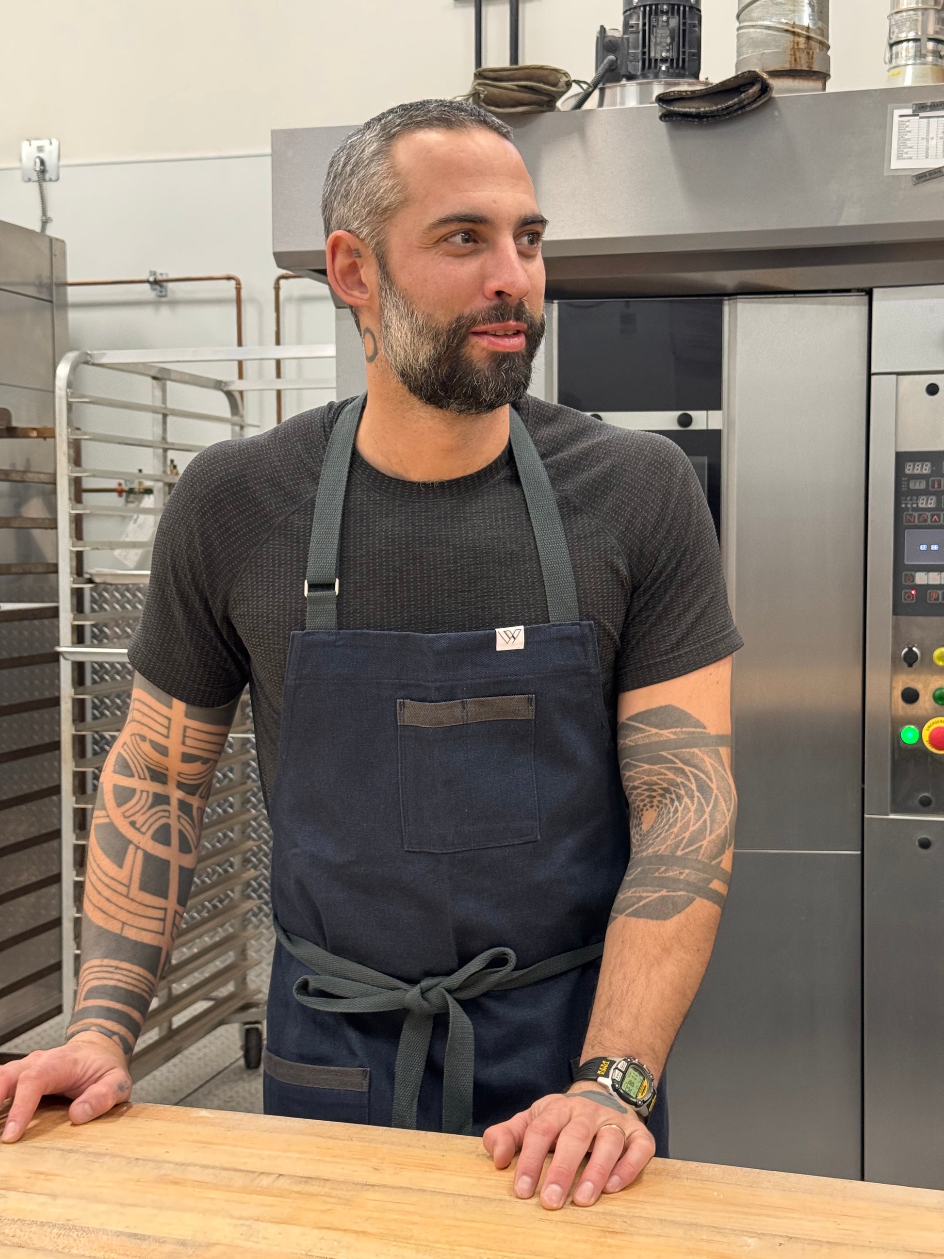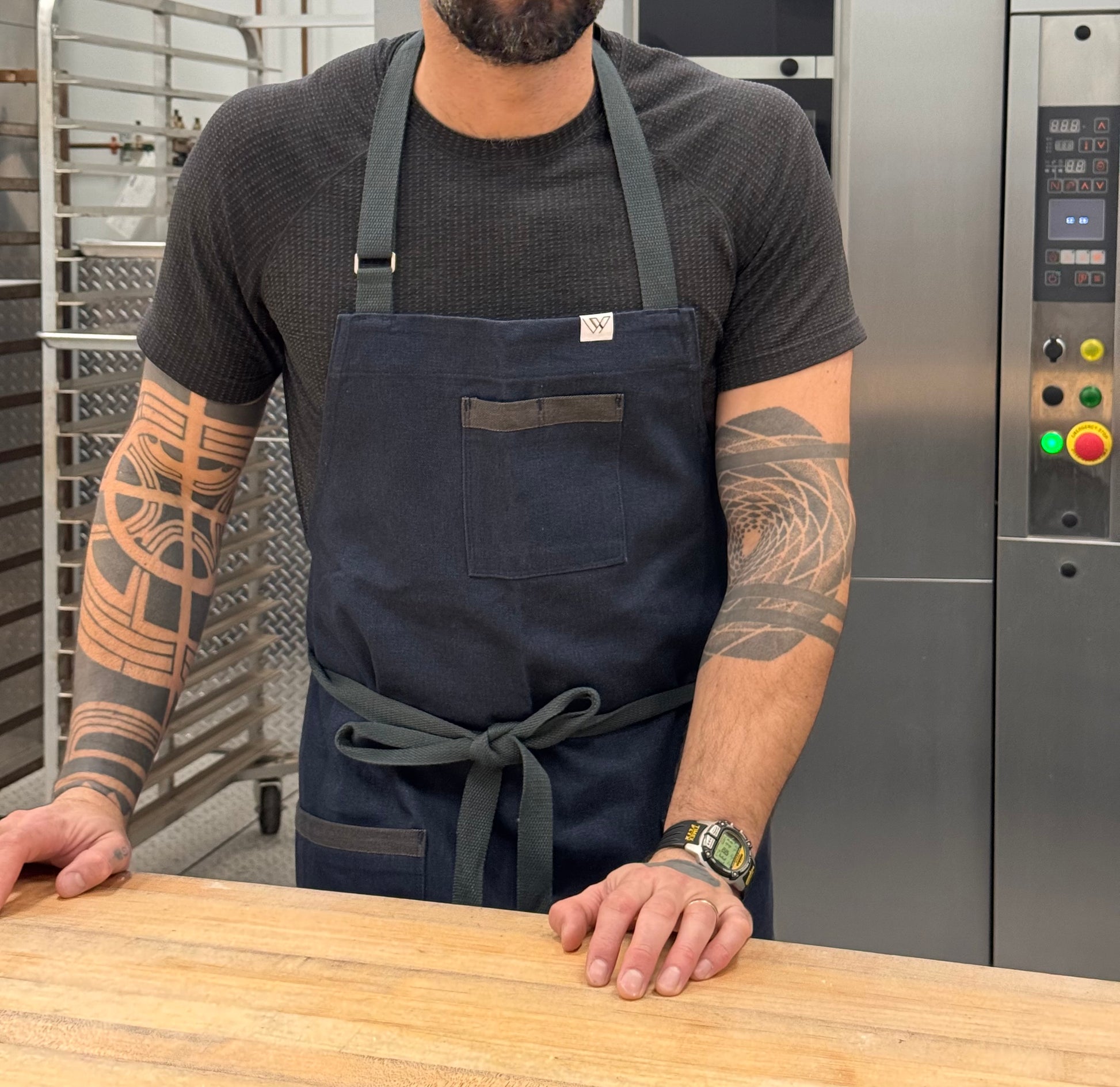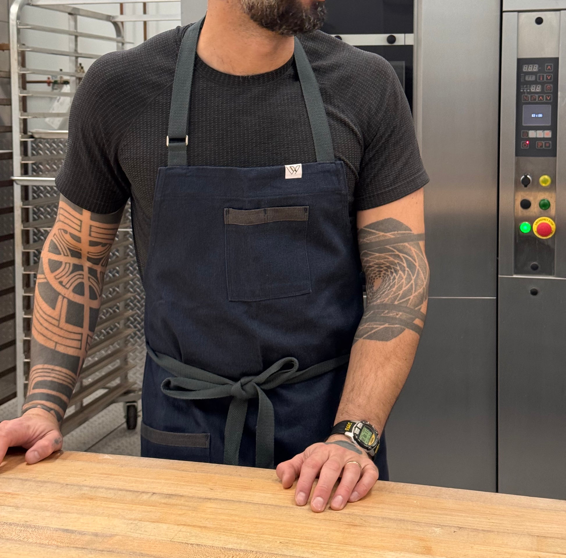 This collection features 2 top accent detail pockets and 2 side accent detail pockets with contrasting colour design. Crafted in navy cotton twill with gray accents. Sizing 5’2”-5’9”