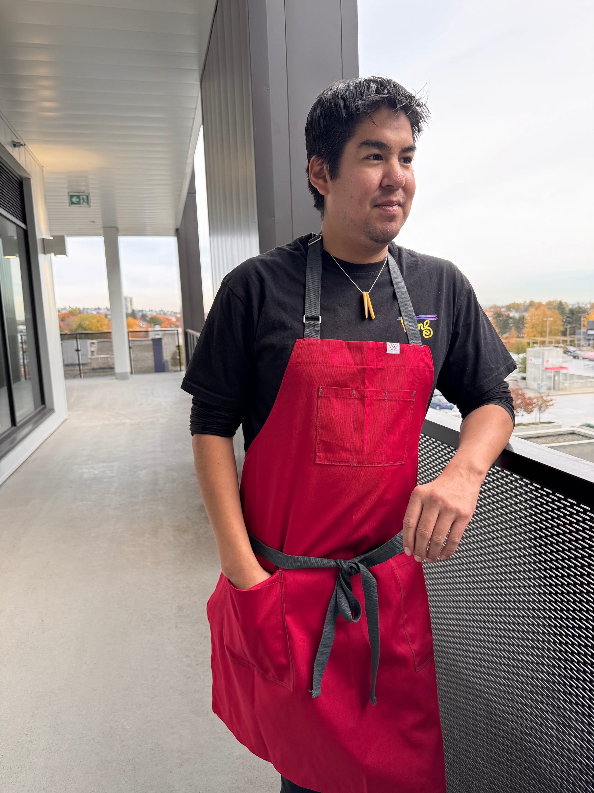 This series features 3 top pockets and 2 side pockets crafted in red cotton polyester. The gray colour stitching detail of the pockets matches the strap colour gray.
